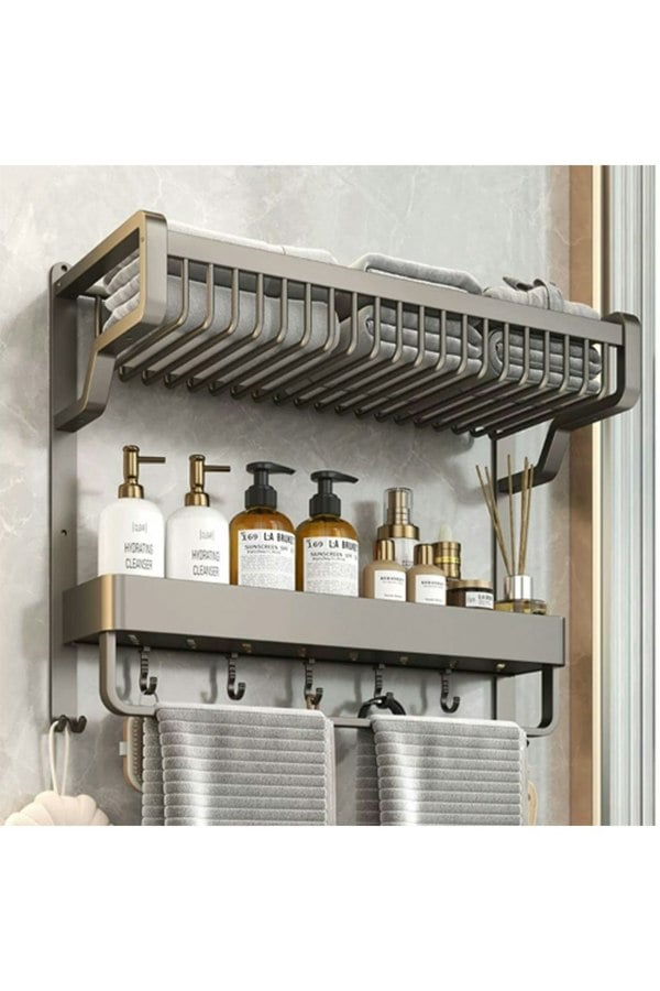 Made from space aluminium, this corner caddy is built to resist scratches, corrosion and tarnishing in humid environments. A hollow-out structure encourages ventilation and drainage, helping water run away so stored items can dry more easily between uses. For added flexibility, it comes with hooks and towel rails to extend your storage options beyond the shelves, making it equally useful in the kitchen for keeping frequently used items within easy reach.
