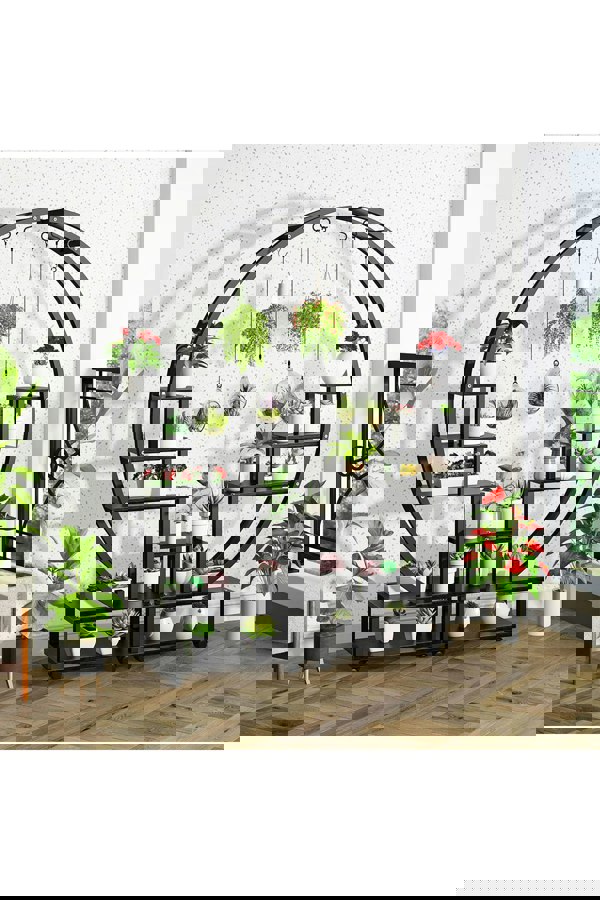 Enhance the beauty of your indoor plants with the Livingandhome plant stand display shelf. Designed with a unique half-moon shape, the plant holder provides an eye-catching and functional way to display your beloved plants. With detachable wheels, you can easily move and rearrange your greenery to suit your preference. Whether you have a collection of succulents, flowers, or herbs, the plant stand set offers the perfect solution for showcasing your botanical treasures.