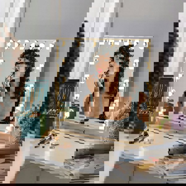 This is a vanity mirror that will not only help with your daily makeup but will also be an elegant piece of decoration in your bedroom. Comes with a smart sensor screen, the mirror allows you to adjust the colour temperature and brightness to let you put on your makeup clearly and it will meet all your makeup requirements. What’s more, the LED light bulbs emit soft and Natural light that is not dazzling or does harm to your eyes.