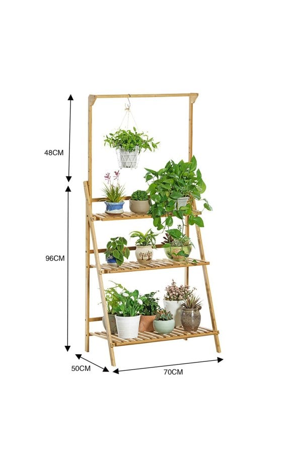 The Livingandhome ladder shelf boasts its pared-down design, which goes well with most plants and blends in with the hues of nature. It is foldable and portable that you can easily move, carry and store it. You’ll be delighted to have it in your indoor and outdoor areas. The holder stands out for its hanging rod. Show off your most attractive plants on it!