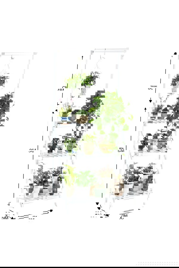 This ladder shelf boasts its pared-down design, which goes well with most plants and blends in with the hues of nature. You’ll be delighted to have it in your indoor and outdoor areas. The holder stands out for its hanging rod. Show off your most attractive plants on it!