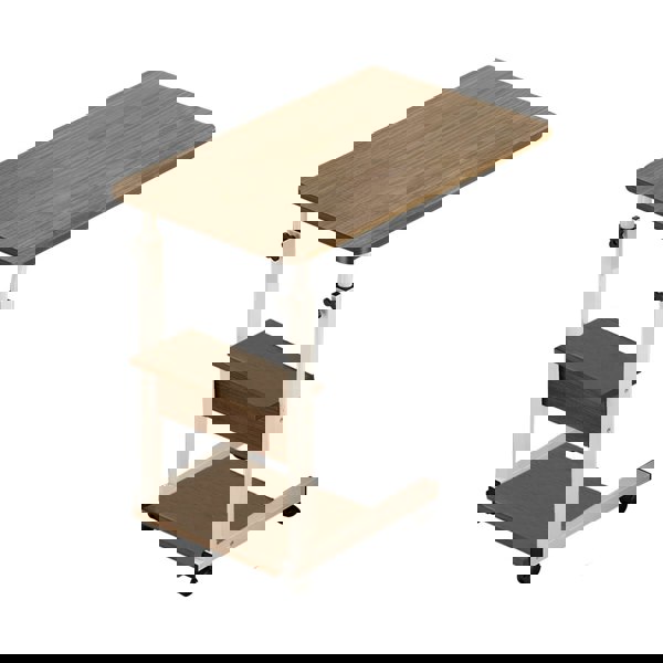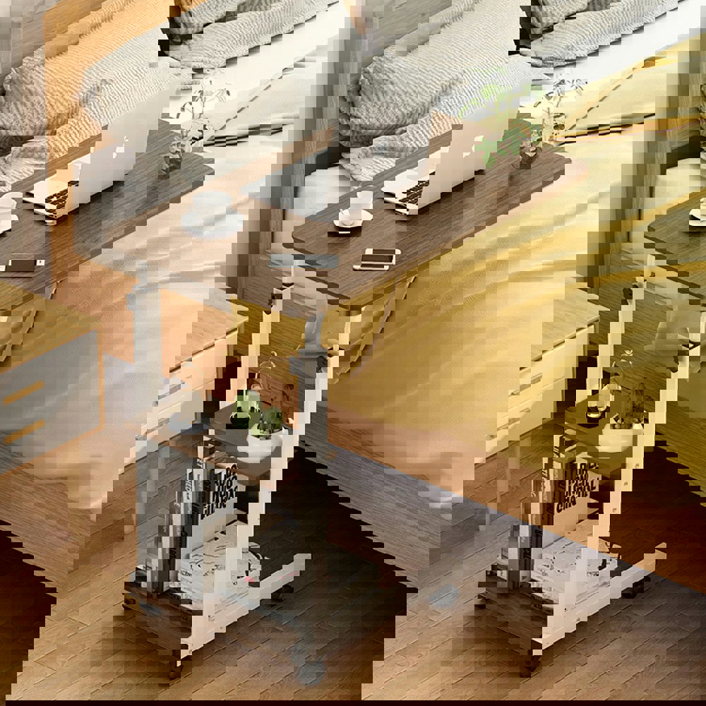 This height-adjustable mobile table is a versatile and practical solution for those looking to optimize their space. Featuring a sleek, modern design with a durable wooden tabletop and a sturdy metal frame, it blends seamlessly with any room decor. Equipped with four smooth rolling wheels for easy mobility, the lockable wheels ensure stability and prevent accidental sliding. With its compact size and space-saving design, it is an ideal addition to smaller apartments, bedrooms, or living rooms.