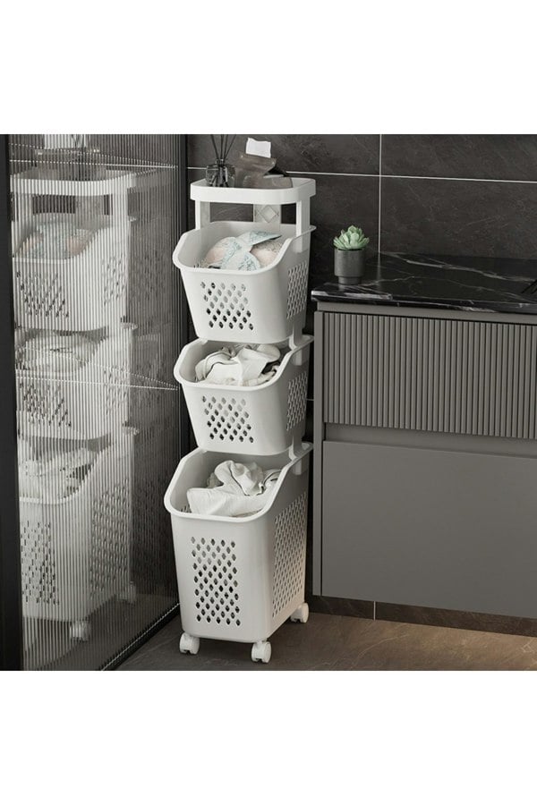 These laundry baskets are home organisation tools that combine aesthetics with functionality. Featuring a spacious, wide-mouth design, they make storing and retrieving items more convenient. With three separate storage baskets, they facilitate the sorting and storing of various items, offering ample storage capacity.