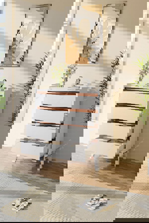Bring an elegant storage solution to your space with this sleek and unobtrusive bedroom chest from Livingandhome. Effortlessly glide four spacious drawers open to reveal ample space for seasonal clothing, bed linens or employ canvas organizers for sorting out smaller items like socks and gloves. The top of the chest offers a platform for showcasing decorations or a stylish table lamp. Crafted from high-quality MDF and durable hardware, this chest is not only functional but also built to last.