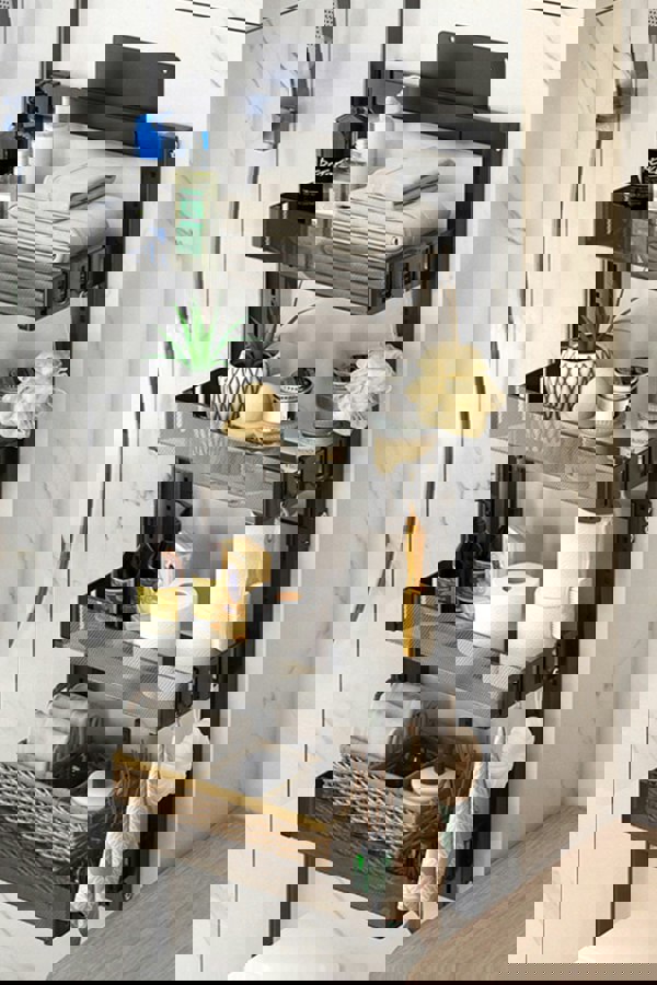 The Living and home Over-the-Door Adjustable Shower Caddy Shelf helps prevent tripping in the shower by clearing off the floor and storing all your bathroom essentials. Made for showers with doors rather than curtains, this shower caddy hooks over the top of shower doors to keep items at hand but out of the way. The caddy has four adjustable basket-style shelves and eight removable hooks for meeting your storage needs. Made of durable metal, you are sure to get plenty of use out of this caddy.
