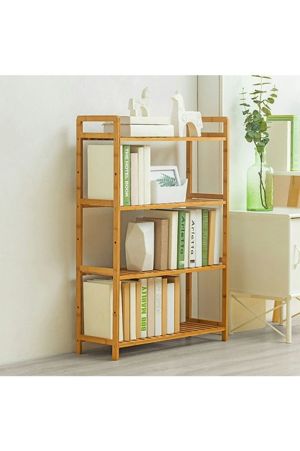 Minimalistic and rustic, that’s the impression this bookshelf makes. Put it in your living space for an instant style upgrade and modern flavour filling. With its tiered design, it has an excellent performance in storing and displaying. Books, photo frames and flower pots, just name it. What’s more, the shelf stands on the floor steadily, it’s lightweight as well so that transporting it can be easy.