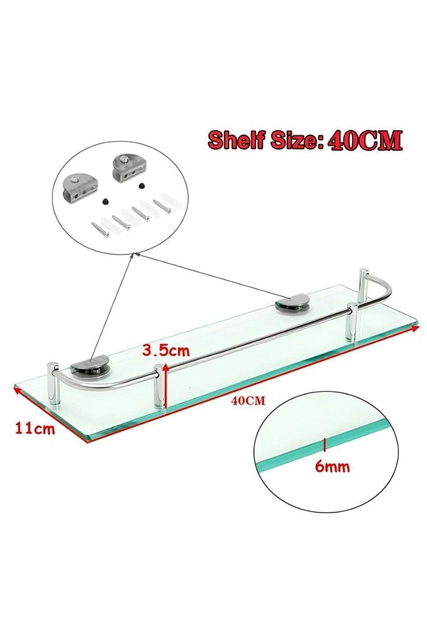 This bathroom glass shelf is made with extra-thick (6mm) tempered glass, safe to use and suitable for children. When it is broken, it will shatter into small particles, rather than be broken into jagged pieces like flat glass, which is unlikely to cause harm. It is made of strong, durable and rust-resistant aluminum to ensure durability and longevity. Suitable for humid environments such as kitchens and bathrooms.