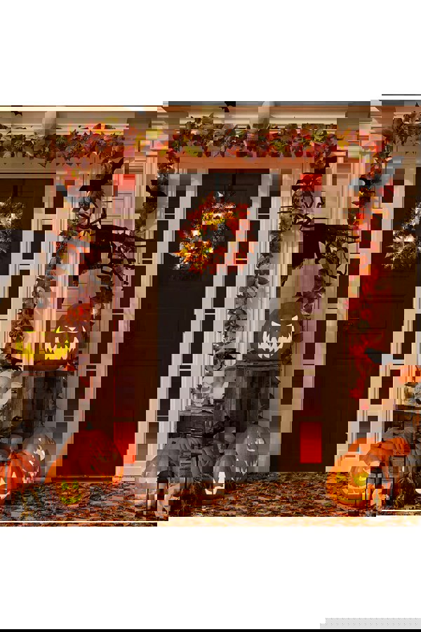 This lovely garland made of maple leaves, berries and vine rings can be easily hung using the included hook to add a touch of beauty and warmth to your home. The garland also features LED string lights to create a warm atmosphere at night. This garland is perfect for the fall season or as a festive decoration during the holiday season, and it will bring a touch of nature to any interior. Light up your home today with this charming and versatile garland.