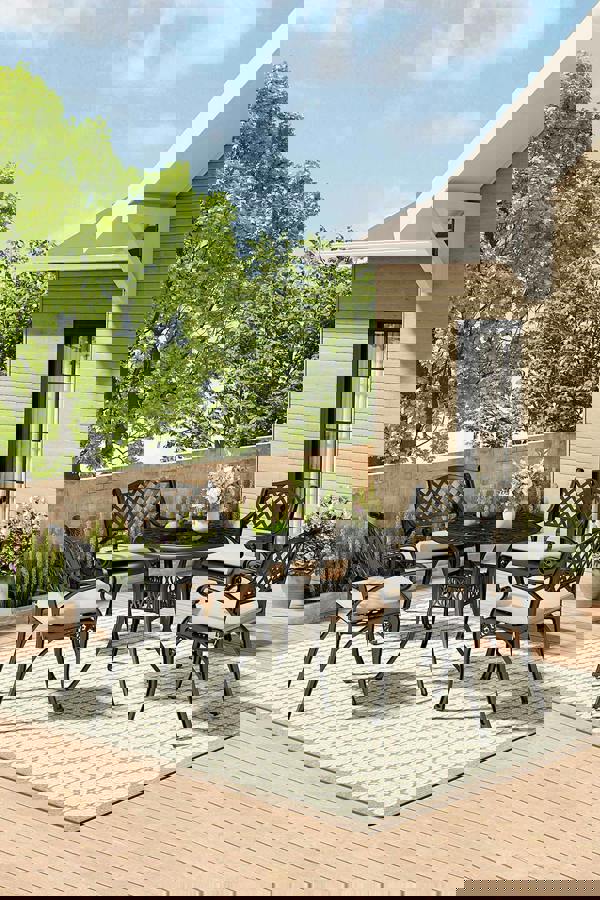 Enjoy your outdoor times with family and friends with the Livingandhome garden furniture set. The table features exquisite detailing with a rounded braid centre and an expanding spiral lattice. The beautiful patterns make the bistro set an elegant addition to your outdoor space. Made from cast aluminum for long-term use. Each chair comes with a separate seat cushion that is thickly padded to keep you comfortable. The table features an umbrella hole, so you can all keep shaded from a parasol safely when it's sunny.