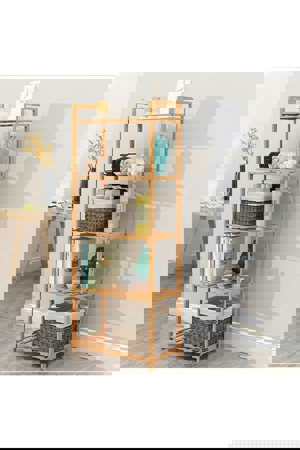 Minimalistic and rustic, that’s the impression this bookshelf makes. Put it in your living space for an instant style upgrade and modern flavour filling. With its tiered design, it has an excellent performance in storing and displaying. Books, photo frames and flower pots, just name it. What’s more, the shelf stands on the floor steadily, it’s lightweight as well so that transporting it can be easy.