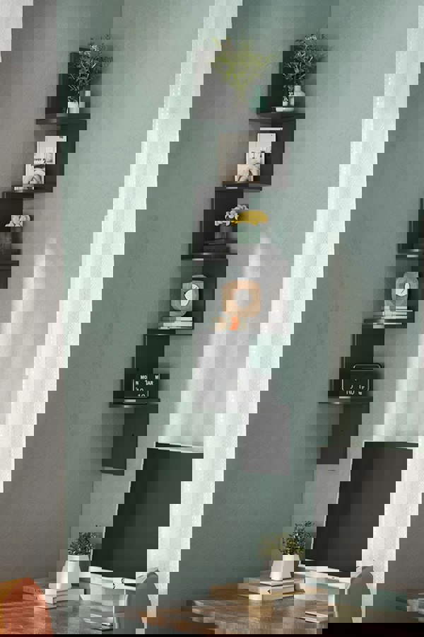Living and Home 5-Tier Wooden Zigzag Floating Corner Shelves Black Bookshelf