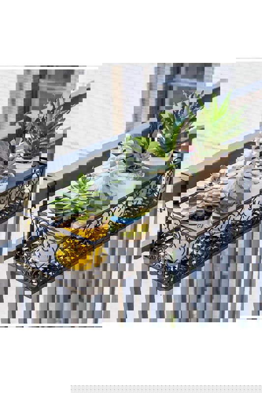 This elegant planter features ornate side patterns that complement various home decor styles, creating a graceful ambiance. Its open structure ensures ample sunlight for plants, while the bottom grid design promotes ventilation and prevents waterlogging. Raised edges keep pots secure, making it ideal for patios, balconies, and gardens. Combining practicality with natural beauty, it enhances any space effortlessly.