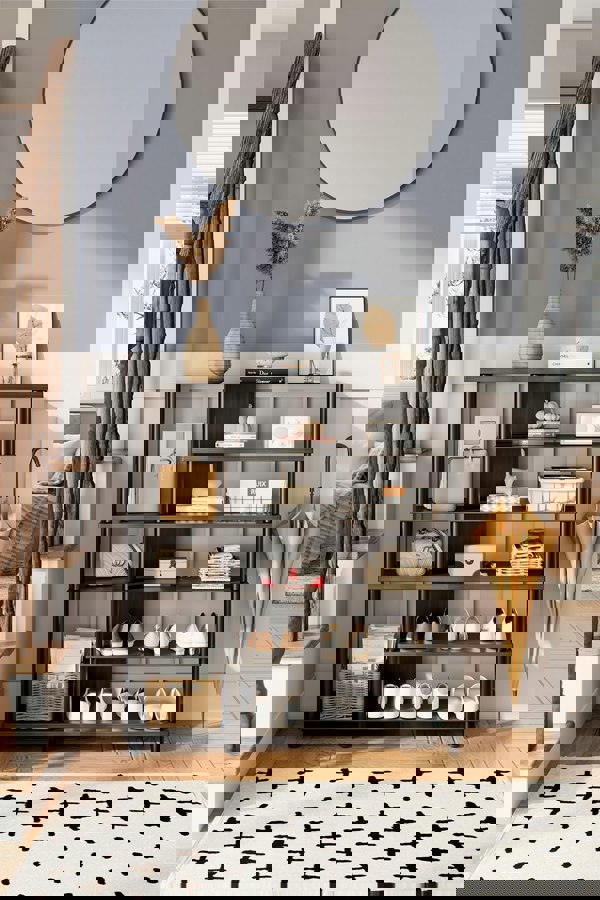 Bring a sense of simplicity and organization to your living space with this functional and aesthetically pleasing shoe rack from Livingandhome. Crafted with modern styling, it is designed for discerning ones who are looking to update their home. Featuring a combination of five shelves with identical heights and three shelves of varying heights on the left, this shoe rack caters to the storage needs of different types of footwear. Its compact structure makes it ideal for spaces with limited room, helping you transform cluttered areas into neat and tidy living spaces.