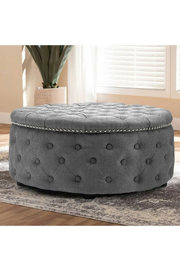 This Livingandhome round footstool has a seedpod-of-lotus appearance and a wide seat to sit cross-legged, making it the perfect spot for meditations. With the shiny nailhead trim and deep buttoned surface, it gives off glam and style even not in use. Moreover, the padded cushion and soft linen fabric make this stool cool for the summer and warm for the winter. And don’t ignore the short yet strong legs under it since they are shouldering the burden of stability and sturdiness. (Tip :This item requires assembly)