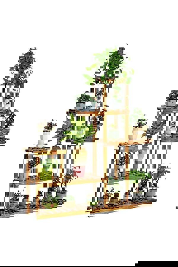 This is a heavy-duty and firm plant stand that you can rely on, its wooden structure is strong enough for daily use. With a total of 6 platforms, the plant stand offers you plenty of space for your favourite plants. Designed with a slatted board on each tier and a staggered layout, the entire plant stand has excellent sun and air flow.