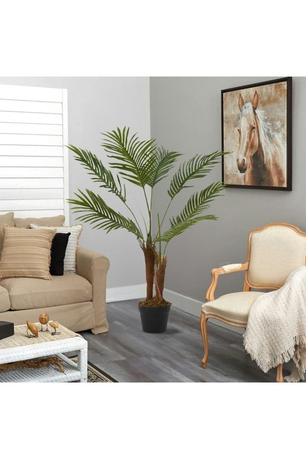 Bring a touch of natural greenery to your space with our realistic palm tree. Each leaf is meticulously crafted to showcase natural hues and lifelike shapes, with clear textures on the trunk that appear almost naturally grown. The internal wire support structure allows the branches to be bent and adjusted freely, enabling you to shape the plant according to your preferences. The base features a simulated root design that enhances the natural feel of the plant. With its moderate height, it saves space without compromising on visual appeal, making it ideal for decoration in homes, offices, or other venues.