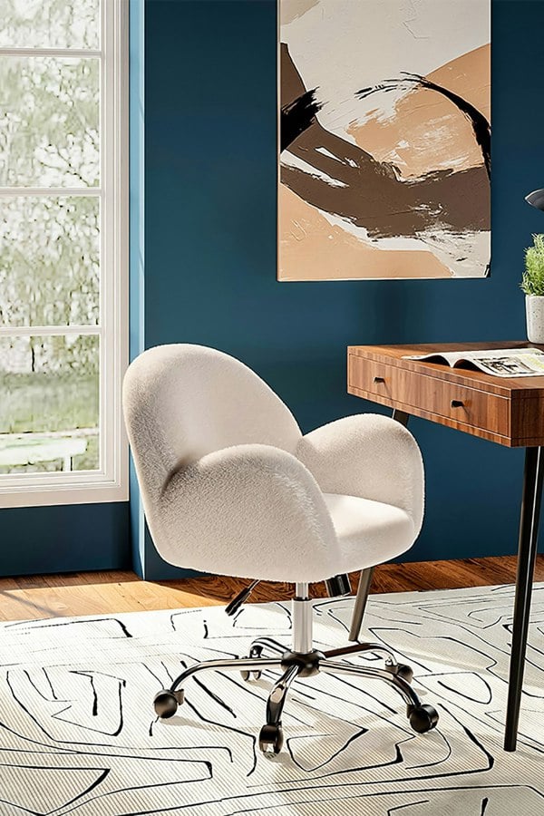 This Livingandhome swivel chair is proud of its fabulous all-over plush upholstered design, which makes it a perfect choice for home office, dressing room and bedroom. The ultra-soft plush fabric will embrace your body and make you feel homey and warm, especially in wintertime. Whatâs more, with the convenient height-adjusting function, the chair can go up and down to match your desk for an optimum sitting position. This item requires assembly