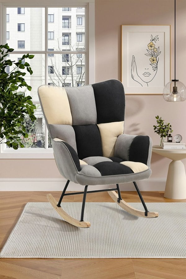 At the end of the day, take a breather and relieve your fatigue on the Livingandhome rocking chair. The chair features wear-resistant linen upholstery, button-tufting design and flared arms, it is all about coziness. When it comes to its modern look, it is completed with a clean metal and wood base, giving it a Nordic appearance, along with stability. Transform any corner of your living space into a rocking spot easily with this chair!This item requires assembly