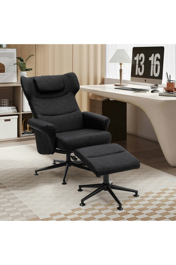 This Livingandhome armchair has everything you need for comfort. Covered in textured soft leather with a sleek black base, it is stylish without being overly flashy. The plush and thick sponge padding offers excellent support and lasting comfort, creating a cozy and warm embrace. With wheels attached to the base, it is easy to roll around and grab snacks without getting up. The ergonomic tilt angle is perfect for those who spend extended hours working, providing a comfy spot for a quick nap in the corner. This item requires assembly