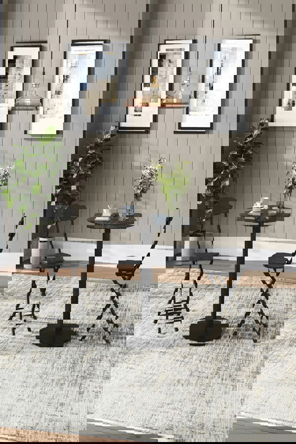 This Black Round Cafe Table from Livingandhome brings gentle elegance to your space with its smooth silhouette and timeless finish. Crafted with a powder-coated metal base and solid laminate top, it features a clean and minimalist design and an unassuming bar-height pedestal for an added touch of sophistication. Compact and practical, this cafe table will create a bright look aligned with your favourite armchair or sofa.