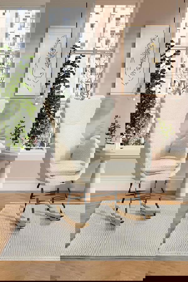 The Living and home comfy rocking chair invites you to lean back or gently rock after a tiring day. The soft sherpa upholstery provides you with immense comfort and aids in relaxation. The seats sit on top of two walnut rockers with a solid iron frame to make the seats sturdy.