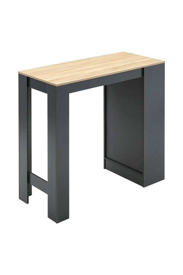 Spend your leisure moments with this Livingandhome Wooden Bar Table. Compact yet spacious, it serves as a perfect dining spot, a standing working desk to combat prolonged sitting. It can even be a stylish display table for showcasing decorations, plants, and more. With a robust load-bearing capacity and ample tabletop space, it offers practicality with 4-tier open shelves holding your wine bottles and wine glasses within hand's reach. Whether for intimate meals or showcasing your favourite items, this multifunctional table effortlessly enhances your living space. (Tip :This item requires assembly)