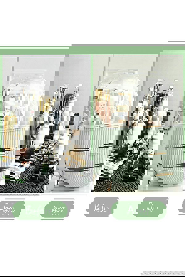 Here comes a good helper with your makeup organization and arrangement. Designed with a cabinet and 2 drawers, your tall bottles, makeup brushes can fit in perfectly. Rest assured that 70% of your tabletop space can be saved. It adopts thickened plastic and acrylic, so it’s scratch-resistant, your items will stay well-protected in it. Settle it on your desktop, both as an organizer and a modern decorative piece. Life is your own, choose the best one, to be your own queen. (Note: Cosmetics are not included)