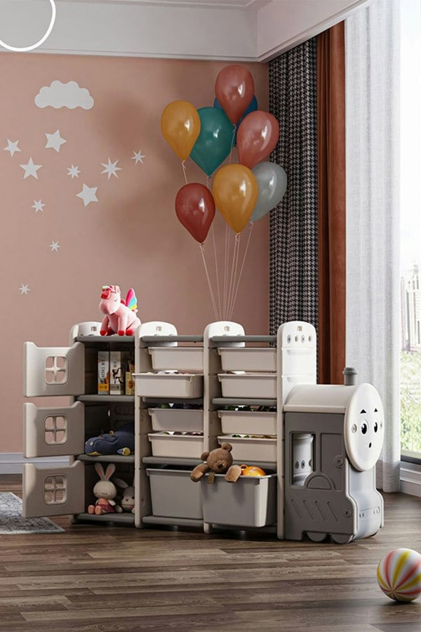 A fun and cute train? Sure. A good helper with your organisation? Yes! The kids storage cabinet set is something you can’t miss for your kid’s room. The loco can be installed on the right side of left side as you like. You can see that this storage unit consists of small pull-out drawers, big pull-out drawers and closed cabinets. And even the loco can hide those secrets and privacy. Made out off top grade HDPE which is ordorless and harmless, it can be a reassuring addition to your kid’s room.