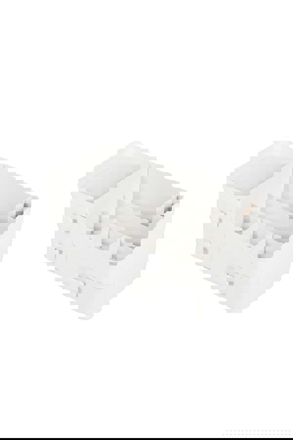 Dimensions: 33.5cm W x 20.5cm D x 14.5cm H/Material: Plastic/Color: White/Package Content: 1 x Makeup Storage Box