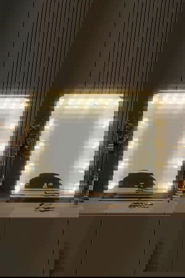 This slim-framed mirror features 15 adjustable LED bulbs in three colour modes, providing perfect lighting for all your makeup needs.