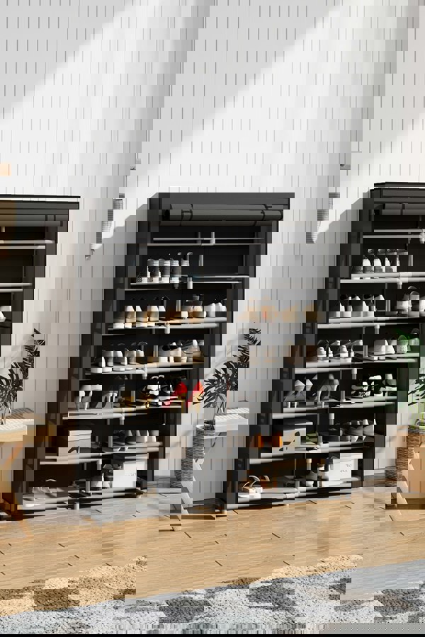 To create a neat entrance space, choose our shoe cabinet. This shoe cabinet features a double-row design and large-capacity storage to keep your shoes clear at a glance. Whether it is leisure shoes, high heels or sports shoes, this shoe rack can do its job perfectly. It can also be used as a storage cabinet to store clothes, blankets and other items. The included cover effectively isolates dust and keeps items inside free from dust. Whether you are a shoe lover or simply looking to keep your home tidy, this shoe cabinet is an indispensable ideal choice.