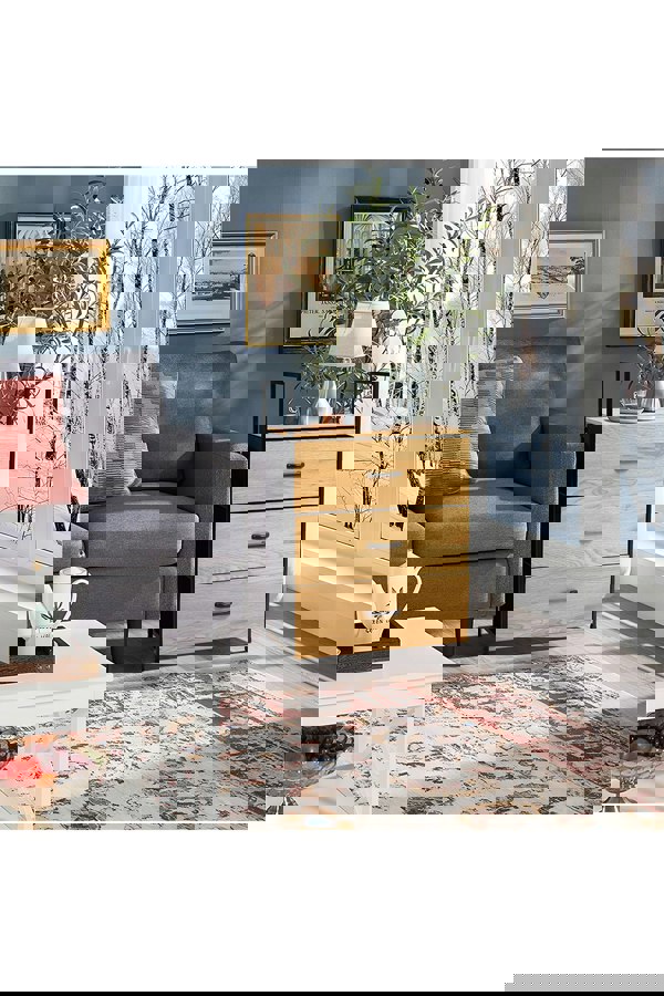 Overall Dimensions:58.5cm W x 23.5cm D x 80cm H/Drawer Width:55.5cm/Drawer Height:19.5cm/Thickness of the Board: 12mm/Thickness of the Steel Tube: 13mm/Material: Manufactured Wood, Steel, Canvas/Cabinet Colour: Natural/Legs Colour: Black/Number of Drawers:3/Legs: Yes/Shape: Rectangular/Package Content:1 x Cabinet,1 x Hardware Kit./