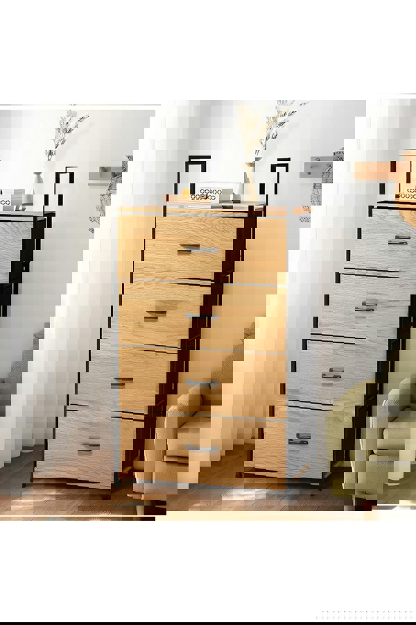 Overall Dimensions:58.5cm W x 23.5cm D x 100.5cm H/Drawer Width:55.5cm/Drawer Height:19.5cm/Thickness of the Board: 12mm/Thickness of the Steel Tube: 13mm/Material: Manufactured Wood, Steel, Canvas/Cabinet Colour: Natural/Legs Colour: Black/Number of Drawers:4/Legs: Yes/Shape: Rectangular/Package Content:1 x Cabinet,1 x Hardware Kit./