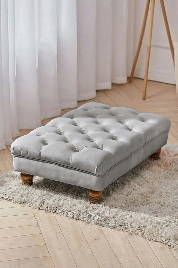 This wide footrest with unique glam is from Livingandhome. Upholstered in high-quality velvet, plus a traditional buttoned top, this footstool aims to add some glamorous vibes to your home interior. What’s more, because of the wide seat, you can put a tray on it to use as a temporary end table. And you should note its gourd wooden legs since they are the strong base of the sturdiness. You will not regret this purchase!(Tip :This item requires assembly)