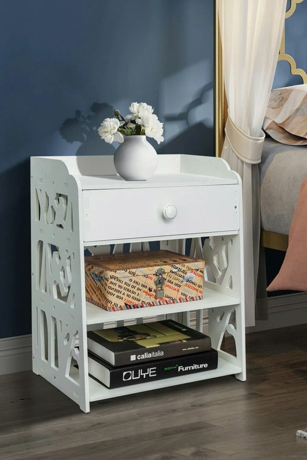 An elegant and functional bedside table is sure to be a must-have piece of furniture for your bedroom. Our bedside table won't take up too much space for you, at the same time, it has 2 tiers of shelves, which can store a lot of things, don't worry about not having enough space for your daily use. The creative hollow design is also matched with a delicate bird pattern, which is simple but not plain. Ideal for places with limited space, such as bedrooms, hallways, or bathrooms.