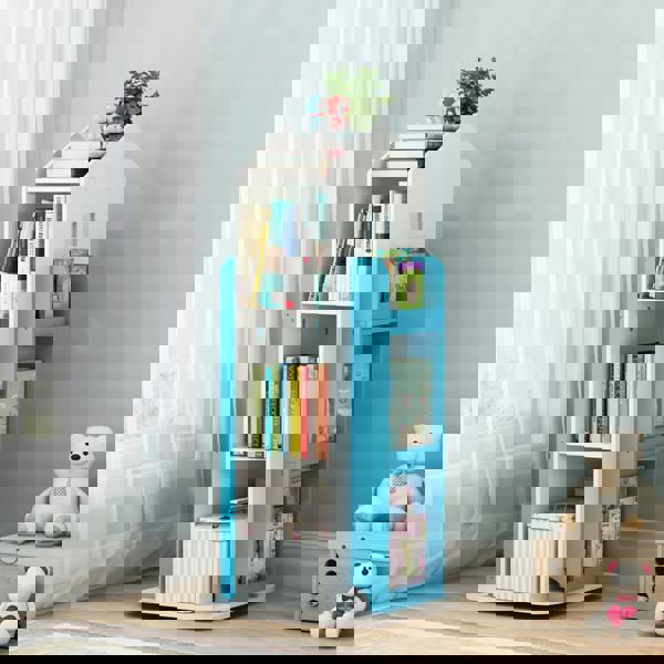 Let your little one enjoy the fun of reading and storage with the Livingandhome House Frame Rotating Bookshelf. This adorable bookcase is designed in the shape of a castle, with four shelves in the middle and three shelves on both sides, it creates plenty of room for books, magazines and knickknacks. The rotating design makes it simple for little hands to fetch or place back the books. Keep your little one's bedroom or playroom organized with this cute bookshelf.
