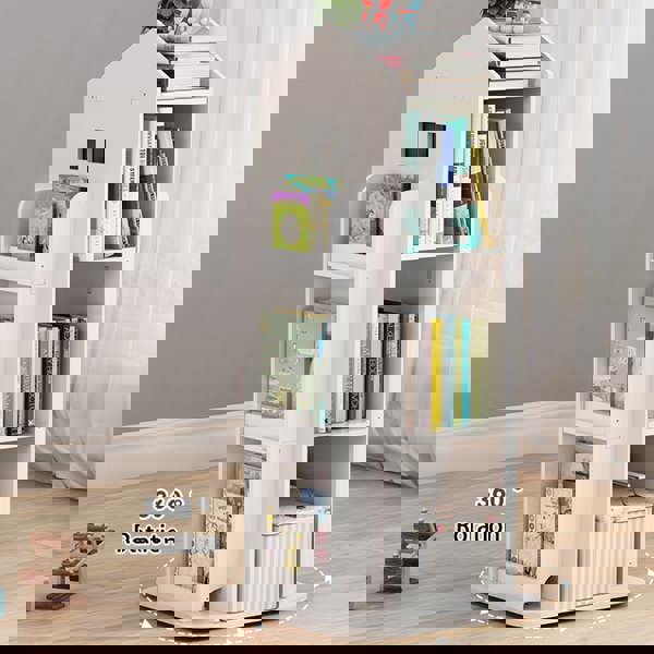 Let your little one enjoy the fun of reading and storage with the Livingandhome House Frame Rotating Bookshelf. This adorable bookcase is designed in the shape of a castle, with four shelves in the middle and three shelves on both sides, it creates plenty of room for books, magazines and knickknacks. The rotating design makes it simple for little hands to fetch or place back the books. Keep your little one's bedroom or playroom organized with this cute bookshelf.