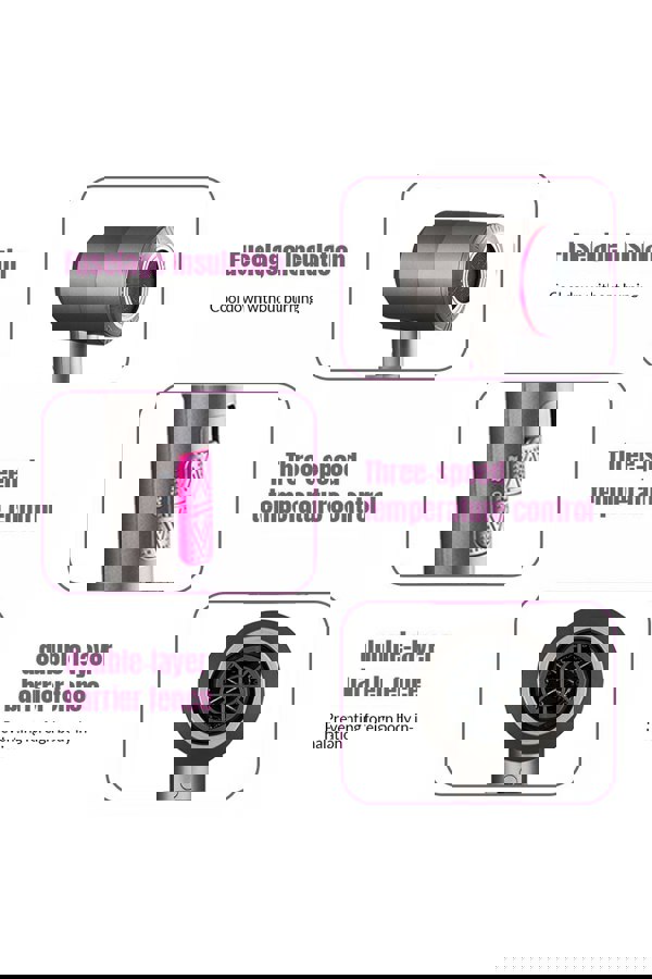 This professional hair dryer helps achieve various hairstyles and efficiently dries your wet hair. Incorporated with ionic technology, it effectively manages frizz and imparts a silky-smooth finish to your hair, all while maintaining the Natural shine. The three-level temperature adjustment, coupled with powerful airflow, accelerates the drying process, minimizing damage. Its compact design is highly portable for travel convenience. Additionally, the UKCA certification ensures enhanced safety for you and your family, eliminating any concerns about potential safety issues during usage.