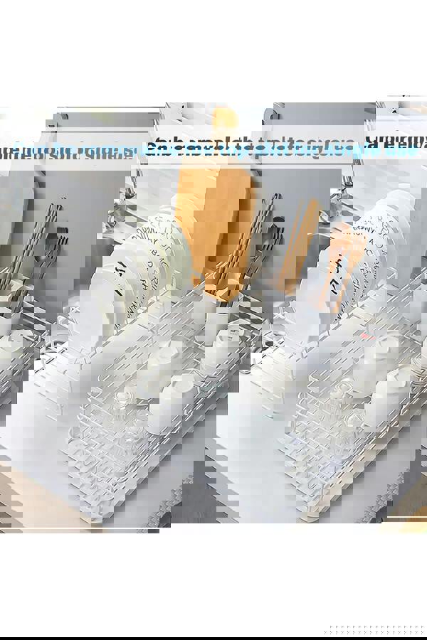 With 2 Tier design, this dish drainer rack with drip tray provides large space for storing your various tableware like plates, dishes and glasses.