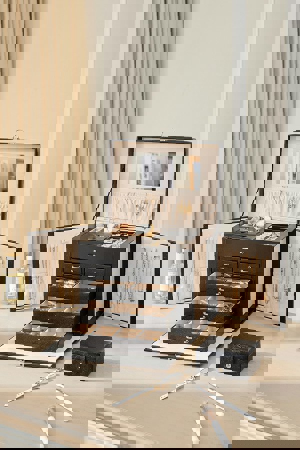 A spacious storage box with an impressive capacity. This Jewellery Storage Box maximizes its storage potential with multiple adjustable compartments for bracelets, rings, lipsticks, and more. What is truly surprising is the side-opening sections, which are perfect for hanging necklaces. The elegant and practical leather shell encases a soft pearl velvet interior that provides excellent protection for your jewellery. It is a must-have for jewellery collectors looking to safely store their dazzling and precious pieces.