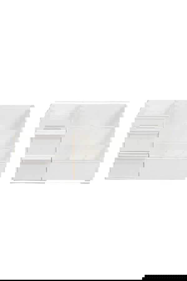 Dimensions:Size: 32.3cm W x 19.5cm D x 13cm H/Type: Makeup Organizer/Primary Material: Plastic/Mount Type: Freestanding/Compartments: Yes/Drawers Included: Yes/Number of Drawers: 2/Finish: White