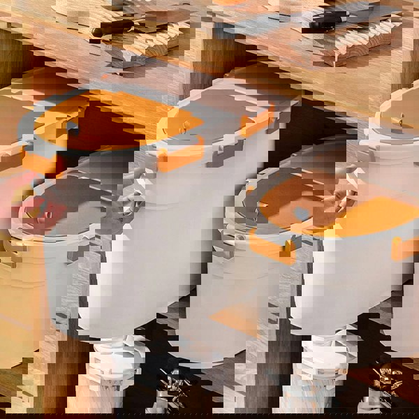 Finished in a vibrant orange, it brings a bright, modern note to your pet essentials without compromising on function. With a stated 4–6kg capacity, it suits households looking to decant a larger quantity of pet food into one dedicated storage solution, helping you keep feeding areas more organised and supplies easier to manage day to day.