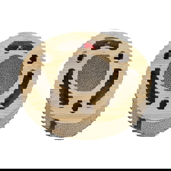 This round cat scratcher is a fantastic addition to any cat's playtime. This scratcher is made with high-quality materials, making it sturdy and long-lasting. It also comes equipped with a red ball that will keep your cat entertained and engaged. The ball is securely attached to the scratcher, so there's no need to worry about your cat accidentally swallowing it. The round shape of the scratcher also makes it an excellent place for your cat to stretch and scratch, keeping their claws healthy and strong.