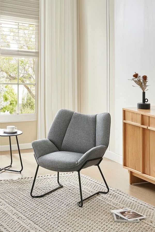 Showcasing minimalist charm, our Livingandhome Linen armchair is where pared-down style meets clean lines. Crafted with a sleek silhouette, neutral tones, and a durable metal frame, this chair can go with any modern interior. The soft linen cushions are both supportive and breathable, promising lasting performance. Whether placed solely in the living room or as part of a seating arrangement, its simple structure makes it a versatile and practical addition to any home.