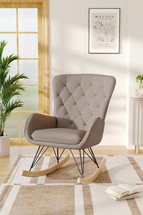Rock on this comfortable chair from Livingandhome and give your body full relaxation. With the gentle swaying of the chair, you can read, listen to music, and take a nap to your heart’s content. Supported by metal frames and wooden runners, the chair allows you to rock comfortably and safely. The rhombus detailing on the back exudes strong timeless appeal, making the chair a favourite for living rooms and bedrooms. This item requires assembly
