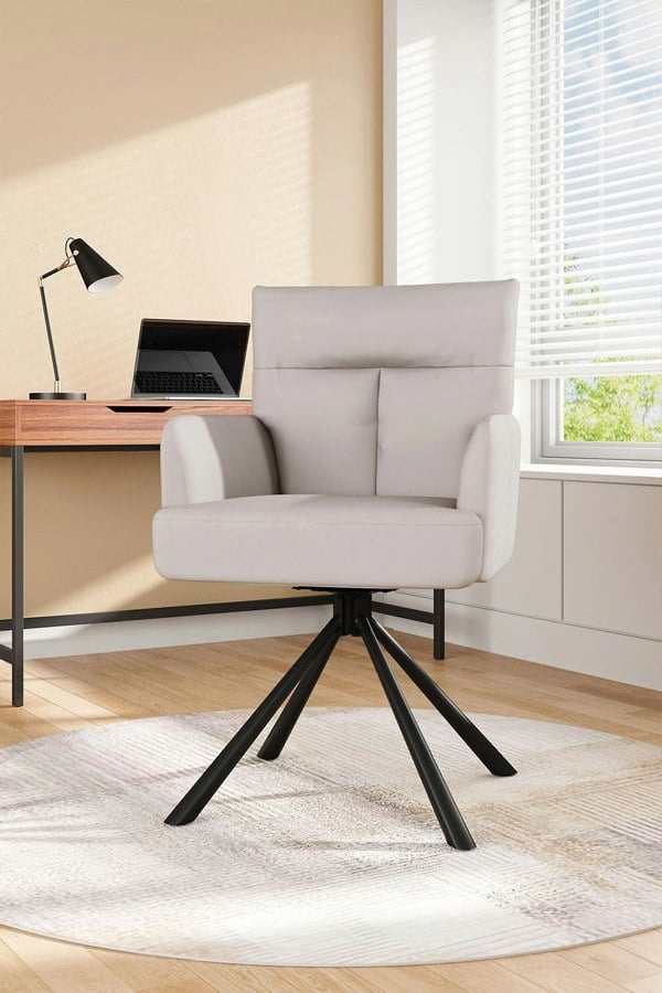 This ergonomic swivel armchair by Livingandhome prioritizes comfort and support. Stylish and modern, this chair features a plush upholstered seat, providing exceptional comfort. Its 180-degree swivel base allows you to easily change your viewing angle or interact with others around you. A perfect addition to your living room, home office, or lounge area. Available in a range of colour options to match your decor. This item requires assembly