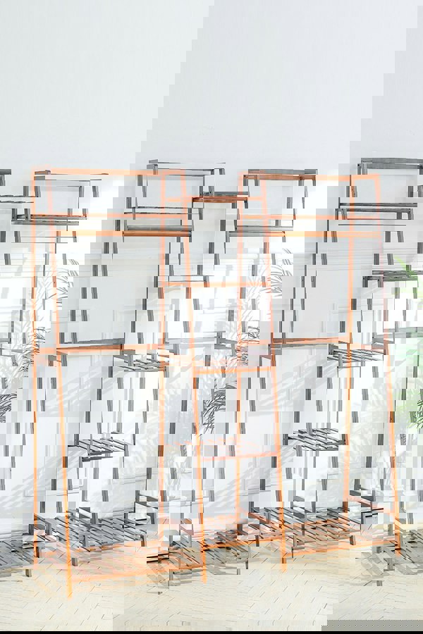 Made of natural bamboo, the Livingandhome trapezoid clothes rack is more durable and safe. This clothes display rack integrates the functions of a clothes rack and storage shelf. Multi-tiered storage shelves and hanging rods give you plenty of space to store seasonal clothes. The freestanding feature makes it a good solution to tidy up your messy room. With this perfect clothes rack, there is no need for you to worry about clothes messing up your room.