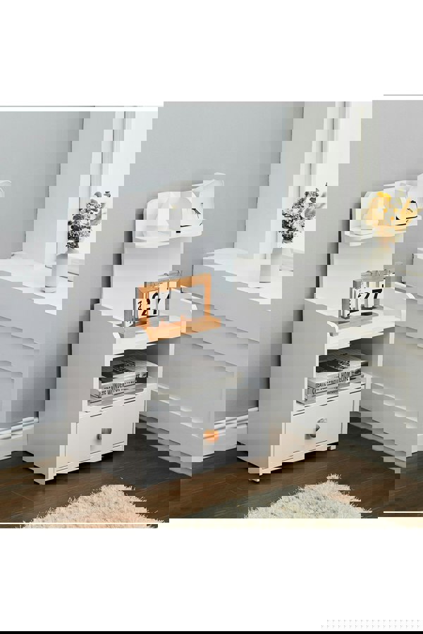 In order to better explore the use of vertical space, this Livingandhome bedside table adds a shelf to it. This nightstand has several different kinds of compartments for you to keep your commonly used items and personal stuff. What’s more, there are two raised guards on both sides of it to protect your sundries from tipping over. It is ideal for compact spaces or those who have long night routines.