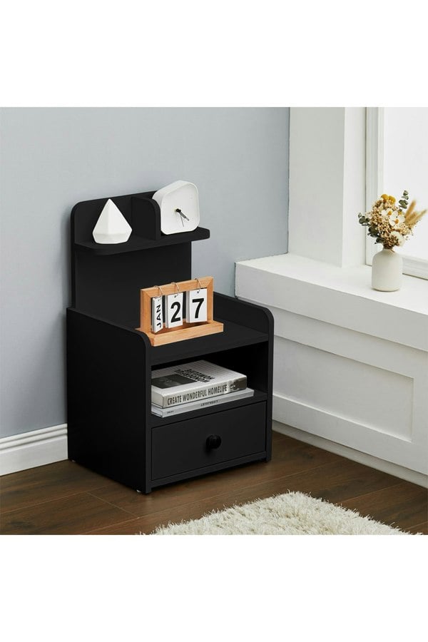 In order to better explore the use of vertical space, this Livingandhome bedside table adds a shelf to it. This nightstand has several different kinds of compartments for you to keep your commonly used items and personal stuff. What’s more, there are two raised guards on both sides of it to protect your sundries from tipping over. It is ideal for compact spaces or those who have long night routines.