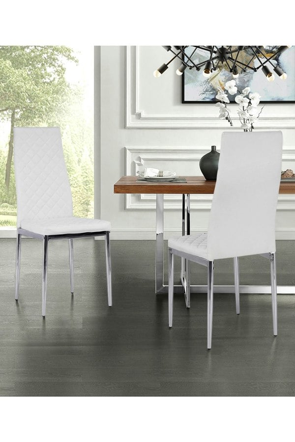Bring a clean, contemporary note to your dining area with this set of 2 high back dining chairs. Designed with a slender silhouette and a rhombus-patterned finish, each chair offers a space-saving look that suits modern interiors without feeling visually heavy.